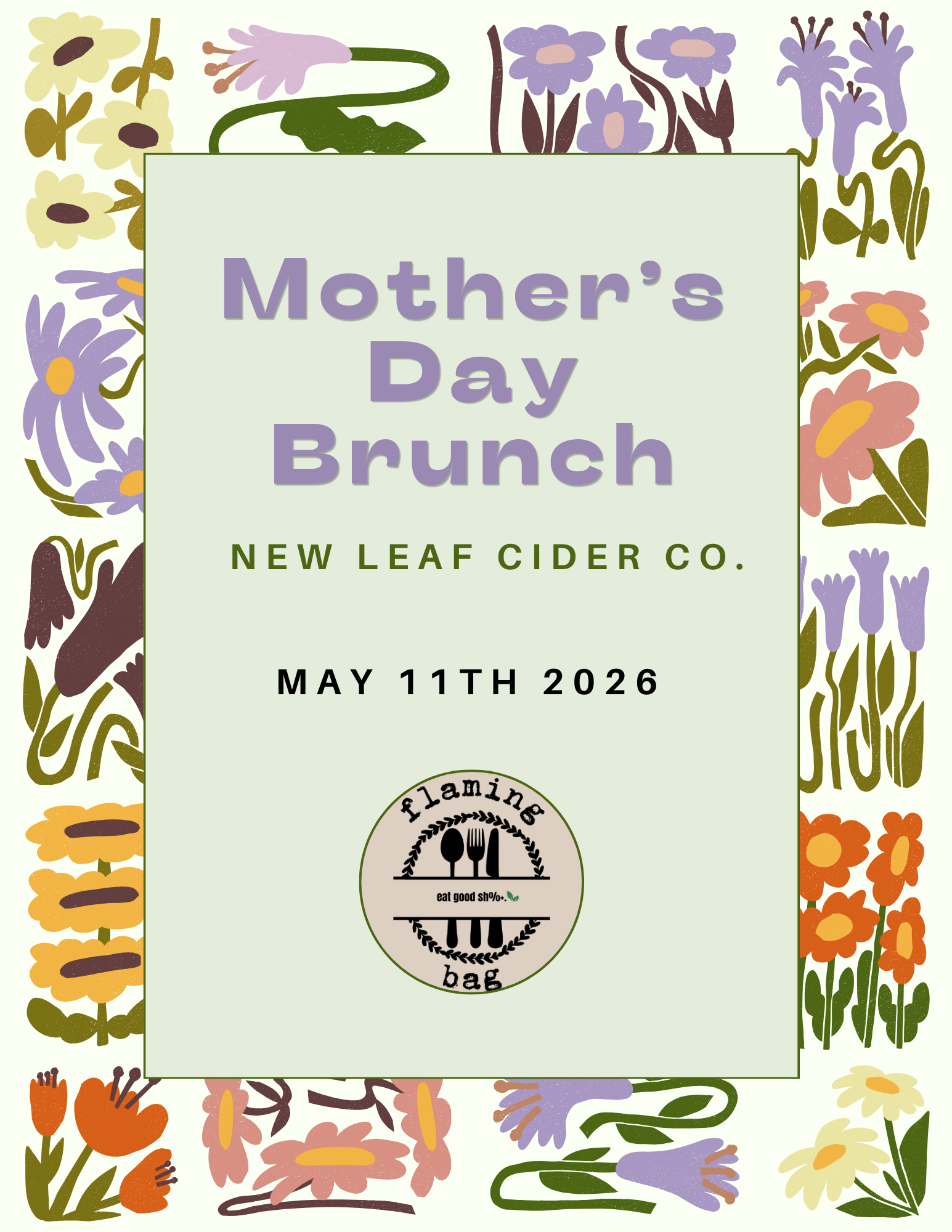 We will have a delicious brunch by flaming bag catering, limited release floral cider flights, and a build your own bouquet bar!
