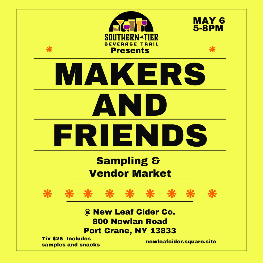 The Southern Tier Beverage Trail is a community of producers and local businesses with common visions and a passion to support each other and others in their community. Each trail member will be bringing a local vendor they work with to produce the delicious beverages you love. You'll have a chance to sample from the producers, purchase product to-go, and shop the local vendors!